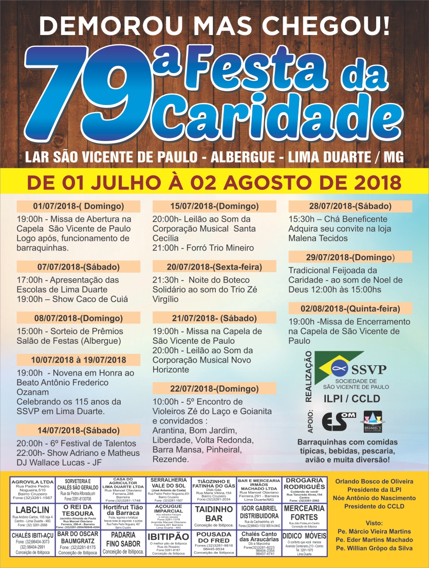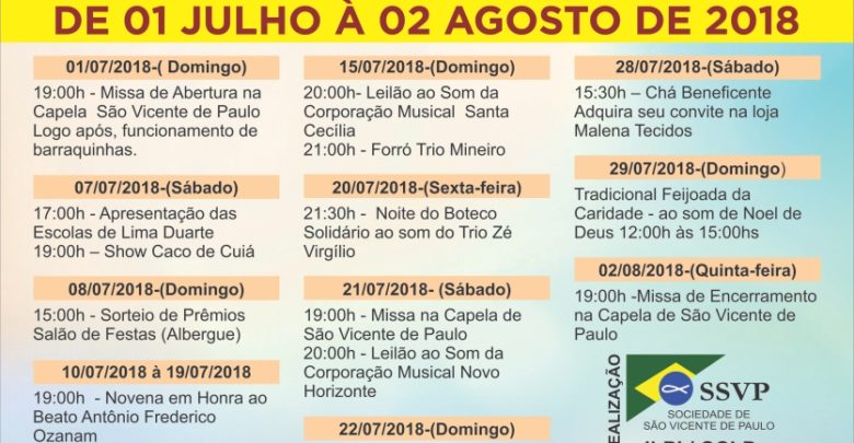 A tradicional Festa do Albergue teve início dia 01/07, com uma Missa, seguida das barraquinhas. O evento acontece durante todo o mês de julho, com diversas atividades: Leilão, apresentação de escolas, novena, Festival de Talentos, Noite de Boteco, Chá Beneficente, Feijoada, encontro de violeiros, sorteios, pescaria, avião e barraquinhas com comidas típicas fazem parte das atrações. A parte cultural conta também com shows de Caco de Cuia, Adriano e Matheus, DJ Wallace Lucas – JF, Forró Trio Mineiro e Trio Zé Virgílio.