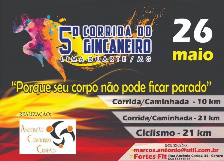 Inscrições: na Loja Fortes Fit em Lima Duarte: 3281-3124 e pelo e-mail marcos.antonio@util.com.br
