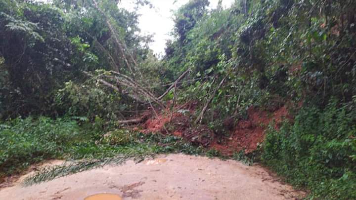 – outro trecho da mesma via, próximo ao Centro de informações Turísticas, na rua que dá acesso ao Lago Municipal, árvore e barranco desabaram, interrompendo toda a rua.