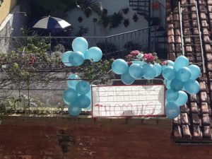 Além do vídeo, os pais colocaram balões coloridos na varanda da casa, com uma faixa escrito Thomás. Ele foi acordado com o Parabéns da Xuxa e ganhou presentes que ele não imaginava, pelo fato das lojas estarem fechadas. “Conseguimos comprar pelo delivery e fizemos questão de prestigiar o comércio local”, enfatiza Janine. Os vizinhos de frente também prepararam surpresas para ele, colocando bem cedinho um cartaz grande de “Parabéns Thomás”, com muitos balões azuis e cantaram parabéns para ele do outro lado da rua. À noite, a família fez um bolo para cantar parabéns. E uma coleguinha apareceu de surpresa, com um presente e uma cartinha para ele.
