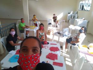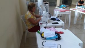 Com a ajuda de funcionários e amigas voluntárias, funcionários da APAE confeccionaram mais de 220 máscaras, que foram doadas e entregues nas casas dos usuários e familiares da Apae de Lima Duarte.