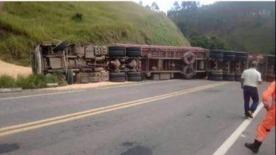 Carreta tomba na BR 267 e compromete trânsito na estrada